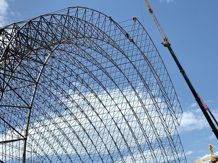 (2)网架加工前应对现场尺寸进行复测,确认无误后方可进行加工、安装;网架制作、运输、安装应遵守《空间网格结构技术规程》JGJ7-2010、《钢网架武汉螺栓球节点》JG/T 10-2009、《钢网架武汉螺栓球节点用高强度螺栓》 GB/T 16939-2016、《武汉钢结构武汉工程武汉施工规范》 GB50755-2012、《武汉钢结构武汉工程施工质量验收标准》 GB50205-2020。