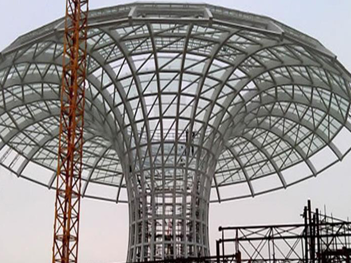 二、球形网架结构因其结构新颖,受力合理,自重轻、用钢量低等优点。如大型体育场馆球形武汉螺栓球网架、公共场馆球形网架、电厂武汉螺栓球网架、水泥工业球形网架、仓储物流球形网架、武汉干煤棚工业球形网架、武汉收费站武汉加油站球形网架、展览中心、影剧院、商场、航站楼、候车厅、工厂武汉车间、仓库、电视塔等球形螺栓球节点网架。国内球形网架结构主要分为:武汉焊接球节点网架及螺栓球节点网架两种。螺栓球节点网架其构件工厂内加工量较大,现场安装便捷,适用于现场工期紧,武汉施工条件、用电量受制约,网架形状复杂、武汉杆件定位困难的异形结构。螺栓球节点球形网架系统基本由武汉杆件、螺栓球、支撑支座等组成。按照节点形式可分为交叉武汉桁架体系、四角锥体系、三角锥体系等。支撑方式多为固定支座支撑。对于大面积、大跨度及有特殊受力或伸缩要求的网架结构可采用橡胶支座、滑移支座、球铰支座等支撑形式,以满足结构自身的受力稳定、均衡,便于内力释放等设计要求。